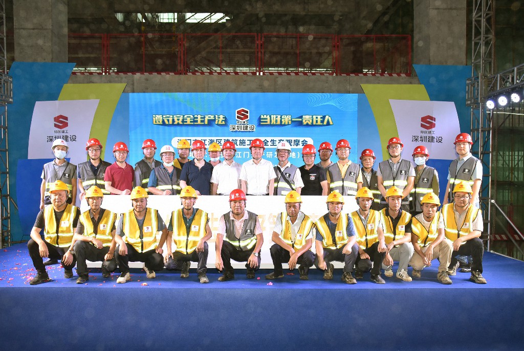 6月12日,江門(mén)市江海區建筑施工安全生產(chǎn)觀(guān)摩現場(chǎng)會(huì )在建設集團承建的金多多江門(mén)生產(chǎn)研發(fā)基地項目舉行。江門(mén)市江海區住建局總工程師彭潔蕓、江門(mén)建筑業(yè)協(xié)會(huì )代理秘書(shū)長(cháng)譚榮錚,阿麥斯江門(mén)金多多生產(chǎn)研發(fā)基地項目總經(jīng)理馬紅帆、副總經(jīng)理王曉琴,深圳建設集團黨總支副書(shū)記石宏偉、副總裁李蕃榮、安全總監余南華等出席活動(dòng)。